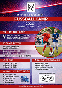 Unsere Fußballcamps bieten Kindern eine sichere, professionelle und erlebnisreiche Ferienwoche, in der Bewegung, Fußball und Gemeinschaft im Mittelpunkt stehen.
